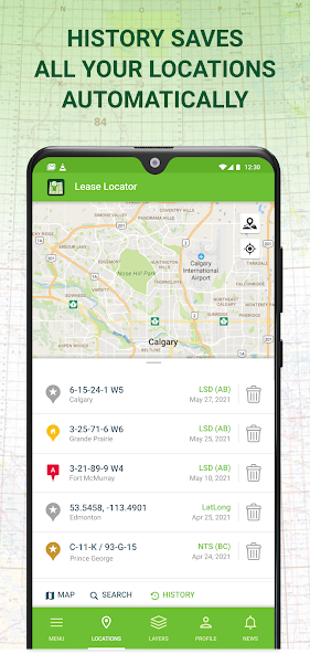 Trouvez avec précision n'importe quel bail en Colombie-Britannique, en Alberta ou en SASK ! Prise en charge : LSD, Lat/Long, NAT, UWI